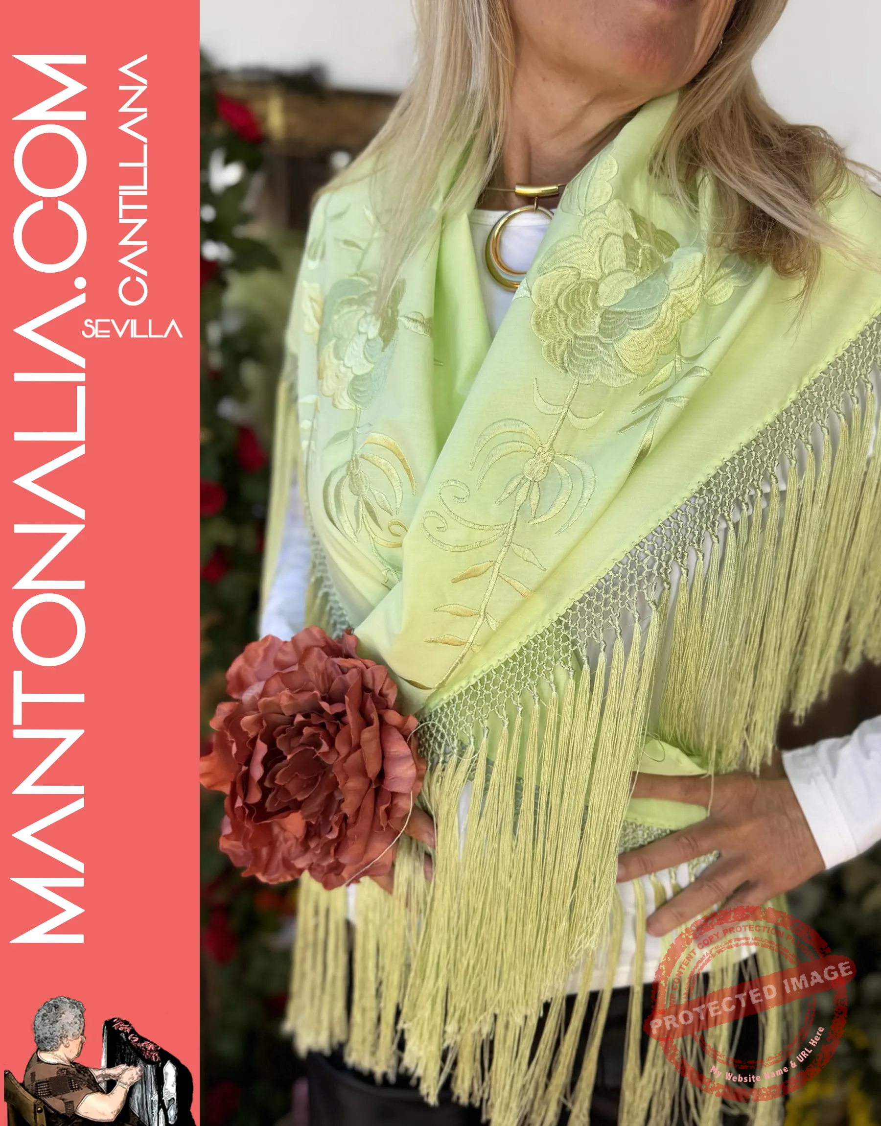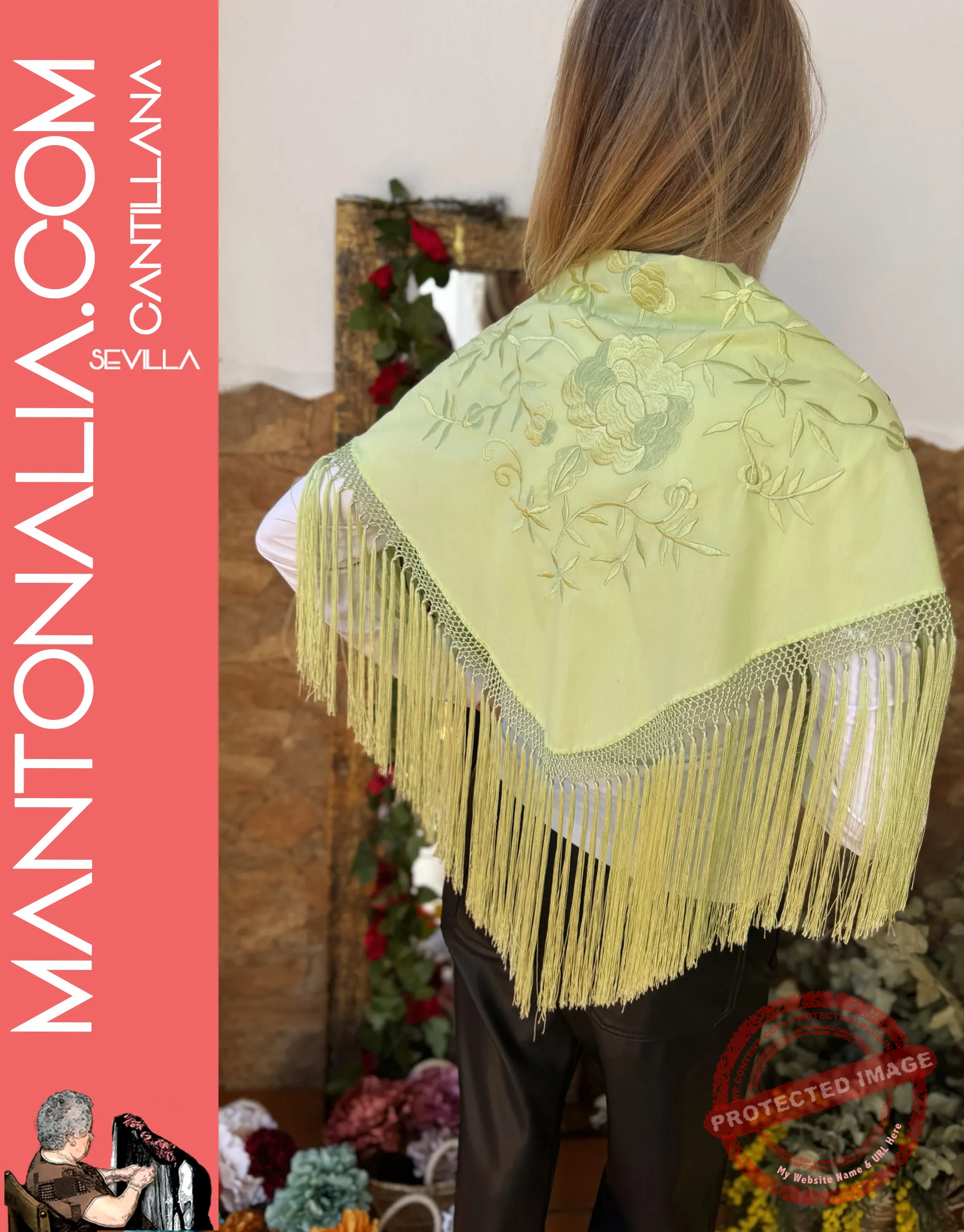 Consigue nuestro mantón cuadrado de 80×80 cm con bordado exclusivo de racimos de uvas de nuestra firma. Úsalo como mantoncillo de flamenca o chal para eventos. ¡Artesanía única y versátil!
