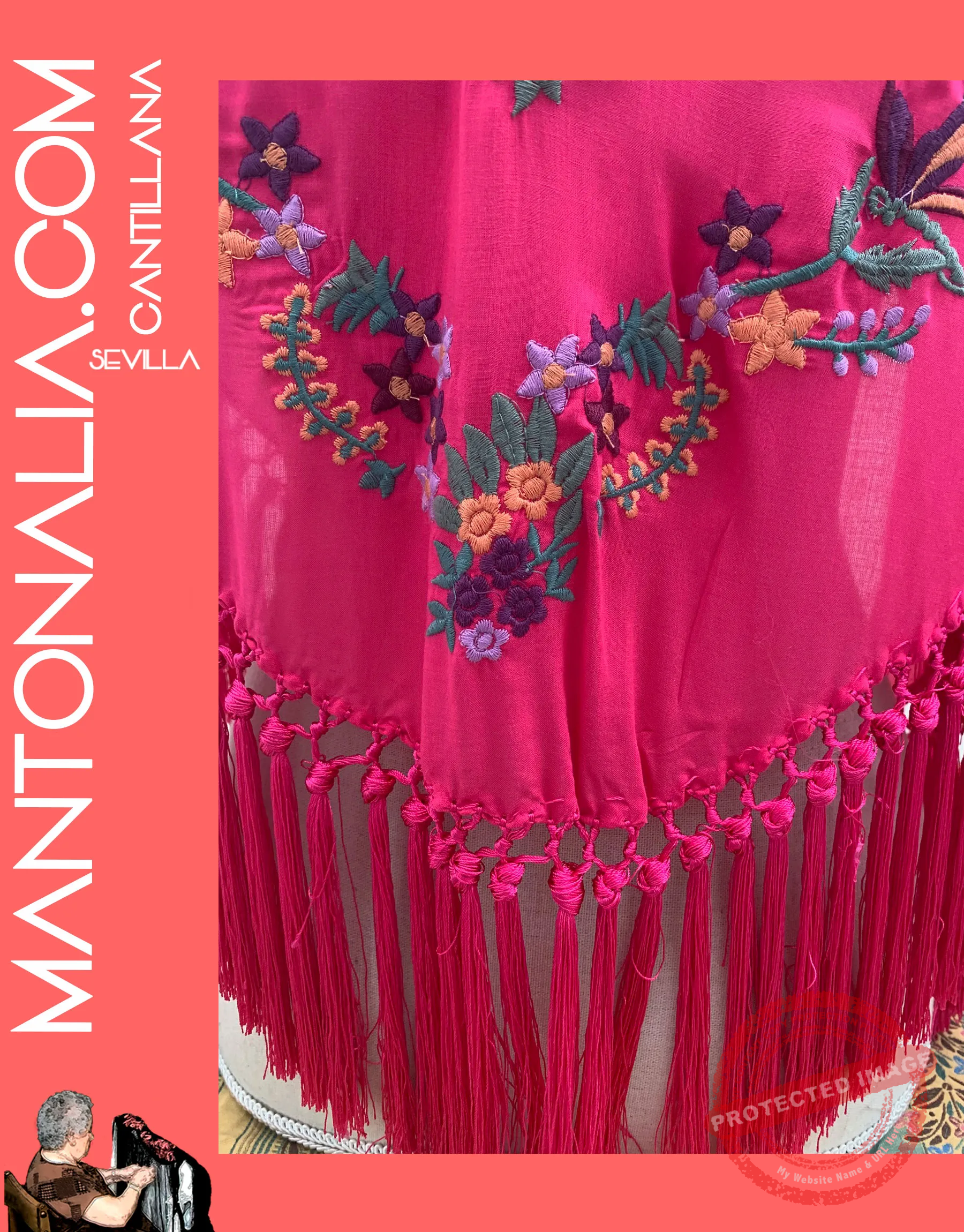 Mantón Flamenca de Cantillana Fucsia de algodón